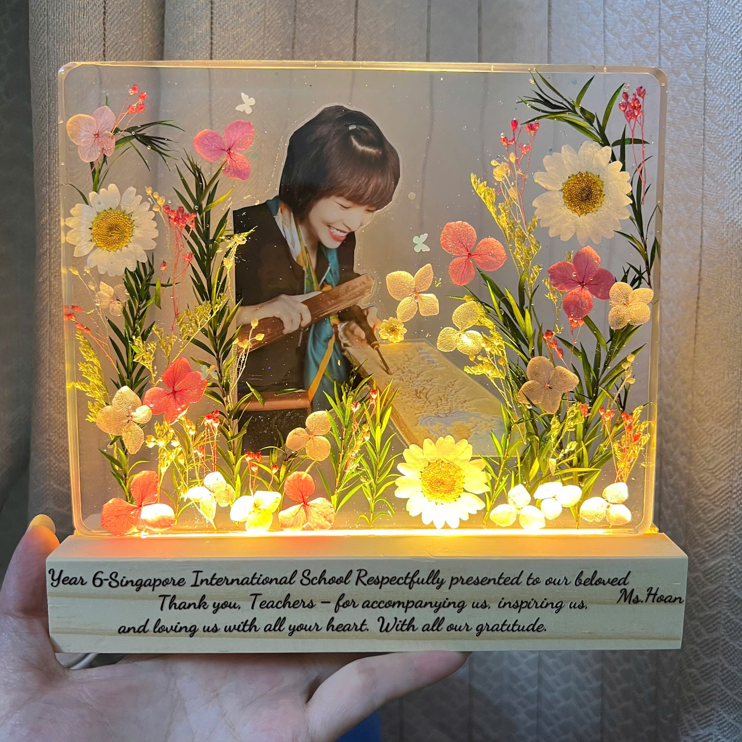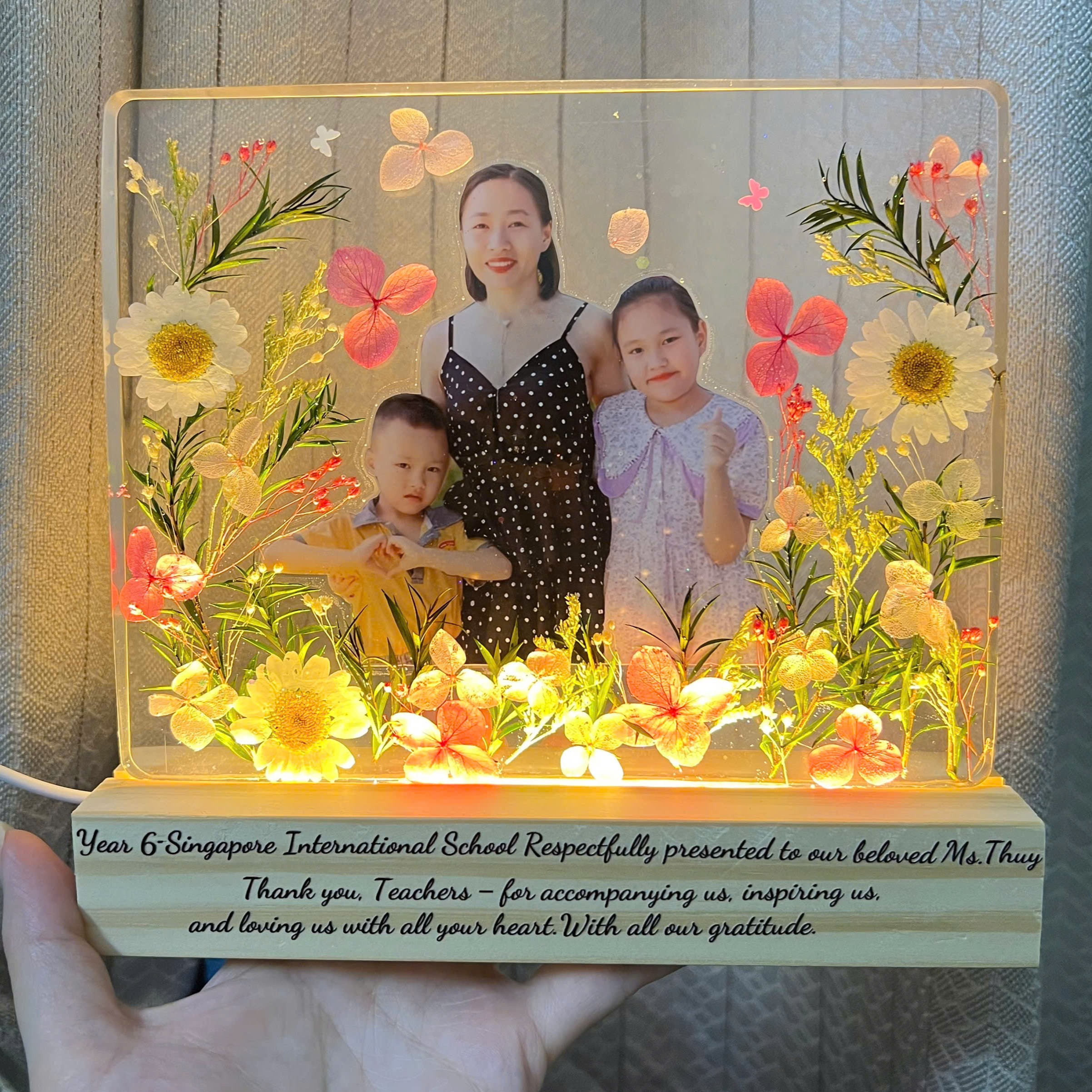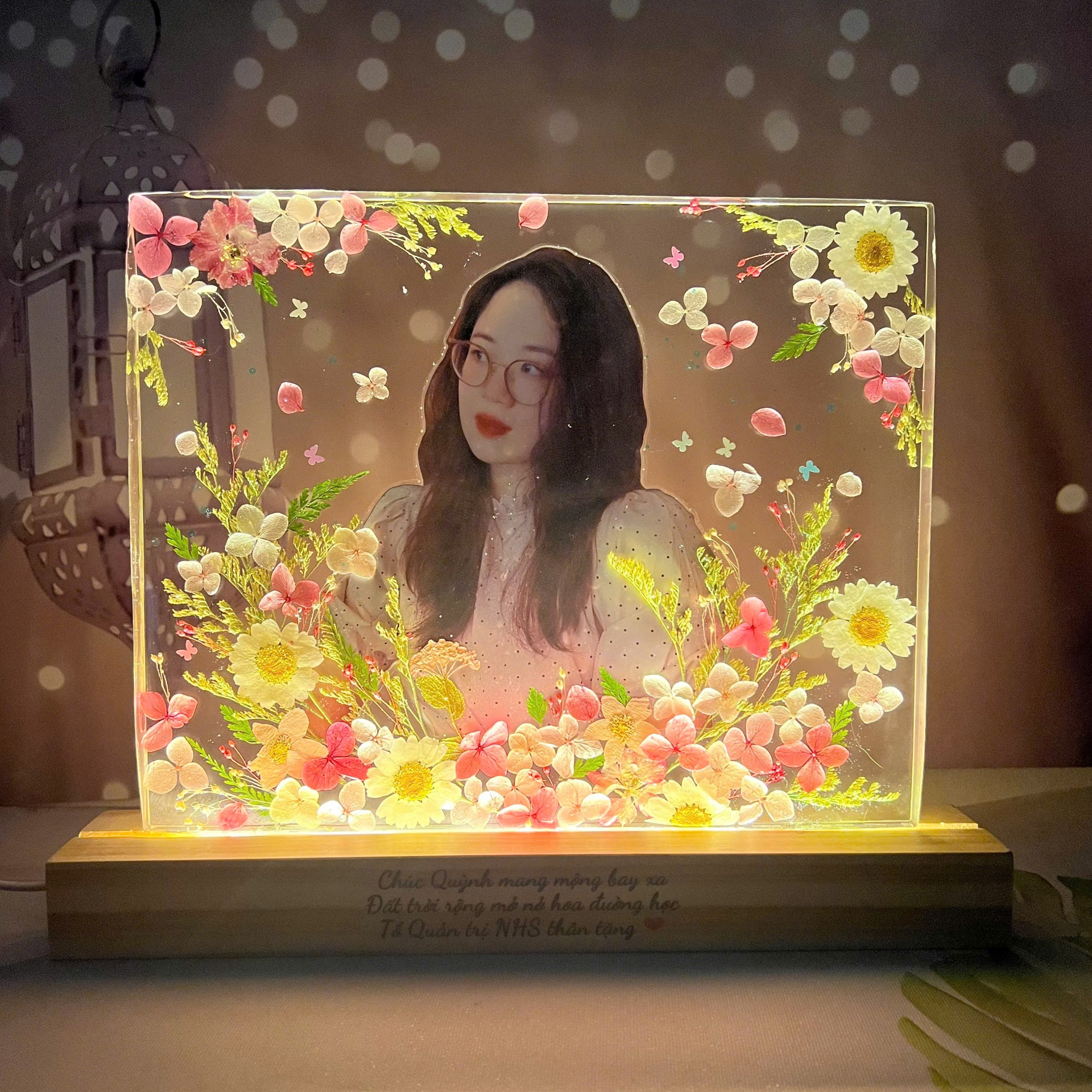 💌 Đặc biệt, bạn có thể cá nhân hóa sản phẩm theo mong muốn: chọn ảnh, màu sắc, kiểu hoa, cách sắp đặt – để mỗi chiếc đèn trở thành một kỷ vật không thể trùng lặp, một món quà mang đậm chất riêng.